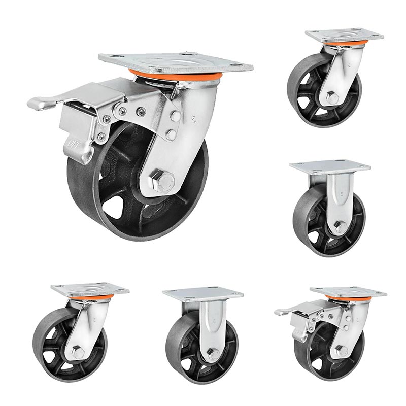 Raskaat pyörät valurautainen teräs-rakennettu äärimmäistä kestävyyttä varten, näissä teollisuusluokan pyörillä on kestävä valurautainen rakenne, joka tukee raskaita kuormia helposti. Täydellinen koneisiin, kärryihin ja laitteisiin vaativissa ympäristöissä. Sileä rullaus, korroosiokestävä ja pitkäaikainen paremman suorituskyvyn saavuttamiseksi.